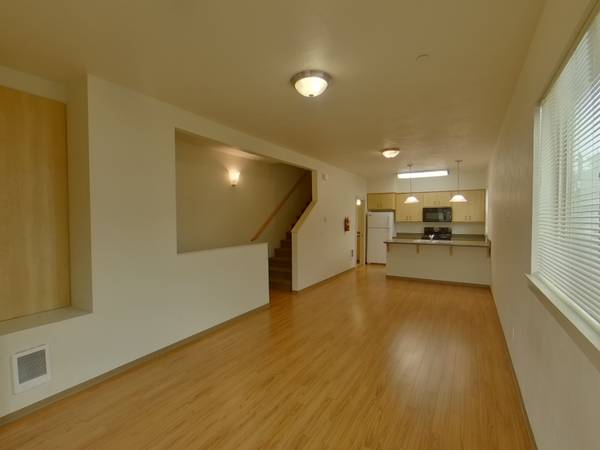 Private entrance off of 19th. Rooms on all 3 levels. Stacked washer and dryer. Range, microwave, dishwasher, refrigerator, disposal. Windows face north & west, private covered balcony facing north. Hardwood flooring in entry/living/dining/kitchen areas.
