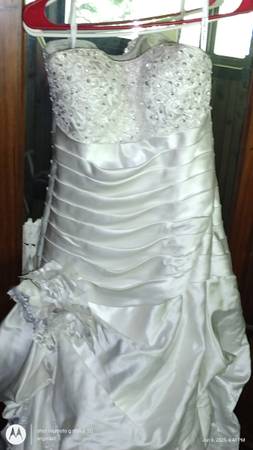 Beautiful $8,000 gown with long train and bling strapless white OBO