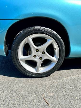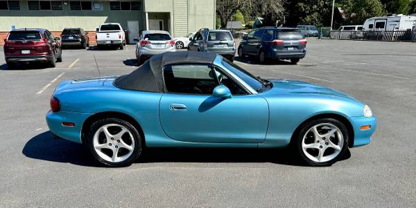 This fun little drop top two seater runs and drives great! It only has 120,000 miles. This car is from Oregon and the title is rebuilt due to lower right suspension damage, that has been repaired professionally and the alignment came out good. This NB is completely unmodified. Engine is quiet and runs great, and the trans shifts well. Timing belt and water pump were replaced at 114k. All lights work. Good brakes. Factory 16"alloy wheels and great tires. Recent oil change and air filter. The body does have a few small dings, The paint has some blemishes and some small scratches. The all black interior shows slight signs of normal wear. New Plates valid registration until March of 2027.