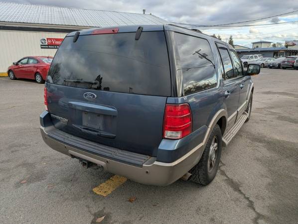 2004 Ford Expedition 4WD Eddie Bauer Edition, 5.4L V8, 3rd row seat. Driver seat needs upholstery repair or seat cover (not pictured) Odometer reads 191,264 miles. Asking $4395