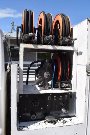 2015 FORD F550 4WD 4x4 SUPER DUTY UTILITY SERVICE TRUCK WITH 6.7 L POWERSTROKE DIESEL, PRODUCT TANKS, HOSE REELS, UTILITY BODY, LOCKING TOOL COMPARTMENTS, DRAWER PACK, OUTRIGGER, TOW PACKAGE, AND MORE!! 247K MILES!! ONE OWNER!!