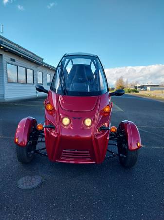 This is a three wheeled electric vehicle that does not require a motorcycle endorsement or helmet to operate. Will get 100 "city" miles of range on a charge and has a top speed of 75 mph. Comes equipped with a charging cable, heated seats and grips, cup holders, phone mount and Bluetooth compatible speakers.