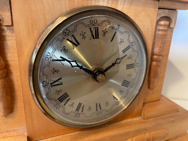 The clock works. It takes a AA battery that is a bit challenging to get into the battery compartment.