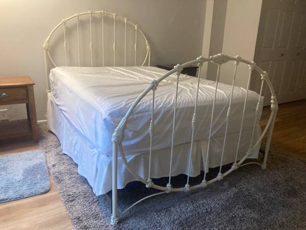 White coated brass queen bed frame. Awesome price for a quality piece. Come get it today in the south hills.