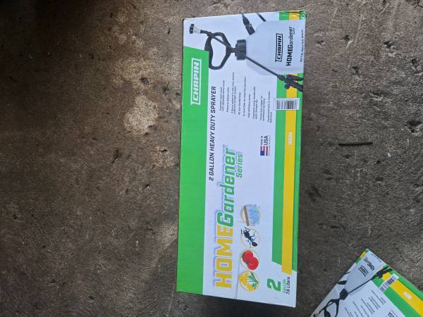 Brand new 2 gallon sprayer. 2 available. 15.00 each. Out off River Road just past Thistledown Farms area.