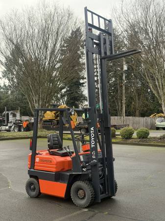 Excellent running Toyota 10 Forklift, 2500 lb lifting capacity. Gas 4 cylinder engine. 2 speed manual transmission, 450 hours, runs and operates great. Power steering! $5250 - Local Delivery...