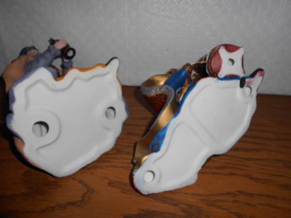 They both have wonderful detailing and in excellent condition. Both are free from chips, cracks, crazing or scratches. Paint surfaces and gold accents are bright and shiny, the rhinestones still sparkle. Made in the early 1900’s.