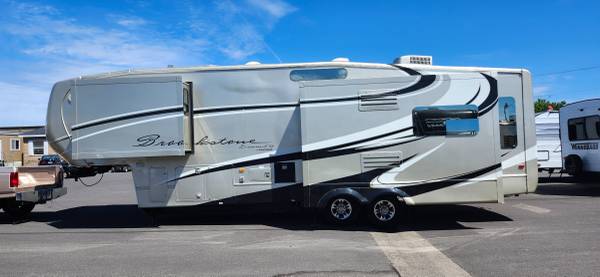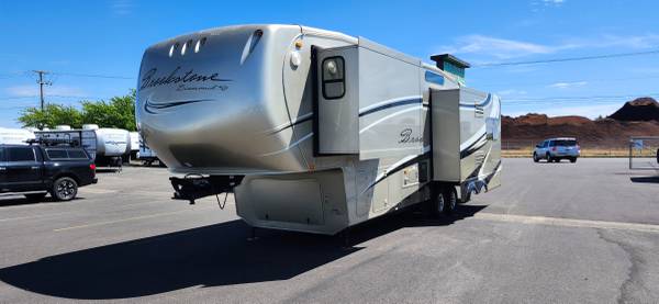 Designed to the discriminating specifications of extended stay RVers, we provide you with the most livable amenities and ample amount of storage in the industry. This makes Brookstone as comfortable as it is convenient. When you buy a Brookstone our commitment to quality and attention to detail will make you wonder if you should ever return home at all. Having it all never felt so good. With the longest list of standard features in its class you will feel spoiled every day. Brookstone appeals to the vacationer in us all. From solid hickory cabinetry, DuPont Corian counter tops, 42” LCD TV’s, a hydraulic leveling system all the way to its automotive high gloss exterior with optional full body paint, the Brookstone shows others how smart you really are. For sale by consignment, motivated seller. Trade ins welcome paid for or not, financing available. Let us show you how easy the buying experience can be at The RV Outlet. Call today for details and affordable finance options.