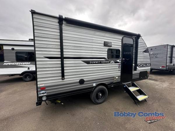 With any Catalina Summit Series 7' by Coachmen RV, you can create an easier adventure with the versatility and simplicity of the shorter lengths and lighter weights! Each includes a premium exterior graphics package, a smooth HD aluminum radius front, and EZ lube axles with leaf spring suspension. The exterior offers a heavy duty standard tongue jack, a diamond plate rock guard to protect against road debris, exterior RG-6 coax cabling and satellite prep, rear view camera prep, and flush mount baggage doors with radius corners for your outdoor gear. Inside, you will enjoy a premium JBL interior speaker, USB charging ports, seamless Thermofoil countertops throughout, a deep basin farm style sink for easy cleanup, and GE kitchen appliances. It's time to choose an affordable and maneuverable single axle trailer today!Â