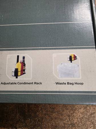 TEXT ONLY CASH ONLY PICK-UP ONLY (54one)556-6553 Clips to bench, table or sticks in the ground. Holder for many useful items in the "kitchen" area