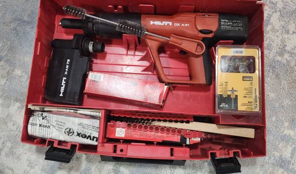 Hilti DXA41 power actuated fastening tool, used to join materials to hard surfaces like steel and concrete Power cartridges Has manual and additional parts and carrying case Also included is the...